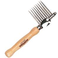 Caution*   The Dematting Rake is very sharp on the side that also has a thumb rest, so be careful to keep the sharp side away from your dog’s skin. Because of the sharp blades and the possibility of a slip, it is best to leave your dog’s underbelly to the groomer. HINT:  Keep the under belly short .