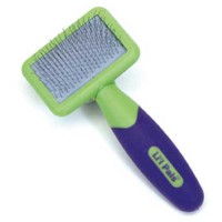 The Slicker Brush  is a great tool to get down to skin level.  Start on a section of the fur and move systematically so that you cover every part of the coat. Be extra gentle on the legs, under the belly, and the arm pits. Lift the coat in the opposite direction it grows and hold it out of the way with one hand, so that you can see the under coat. Starting at the base of the coat near the skin, brush small sections of the hair back down until it’s brushed through. Follow up with a comb to check your work, if your comb won’t get through there is more work to do. Make sure to brush every square inch of your dogs body in this manner.  Note- Doodles go through a coat change between 10 and 14 months of age. Daily brushing is especially important during this time to remove the puppy coat and prevent matting as the adult coat grows in.